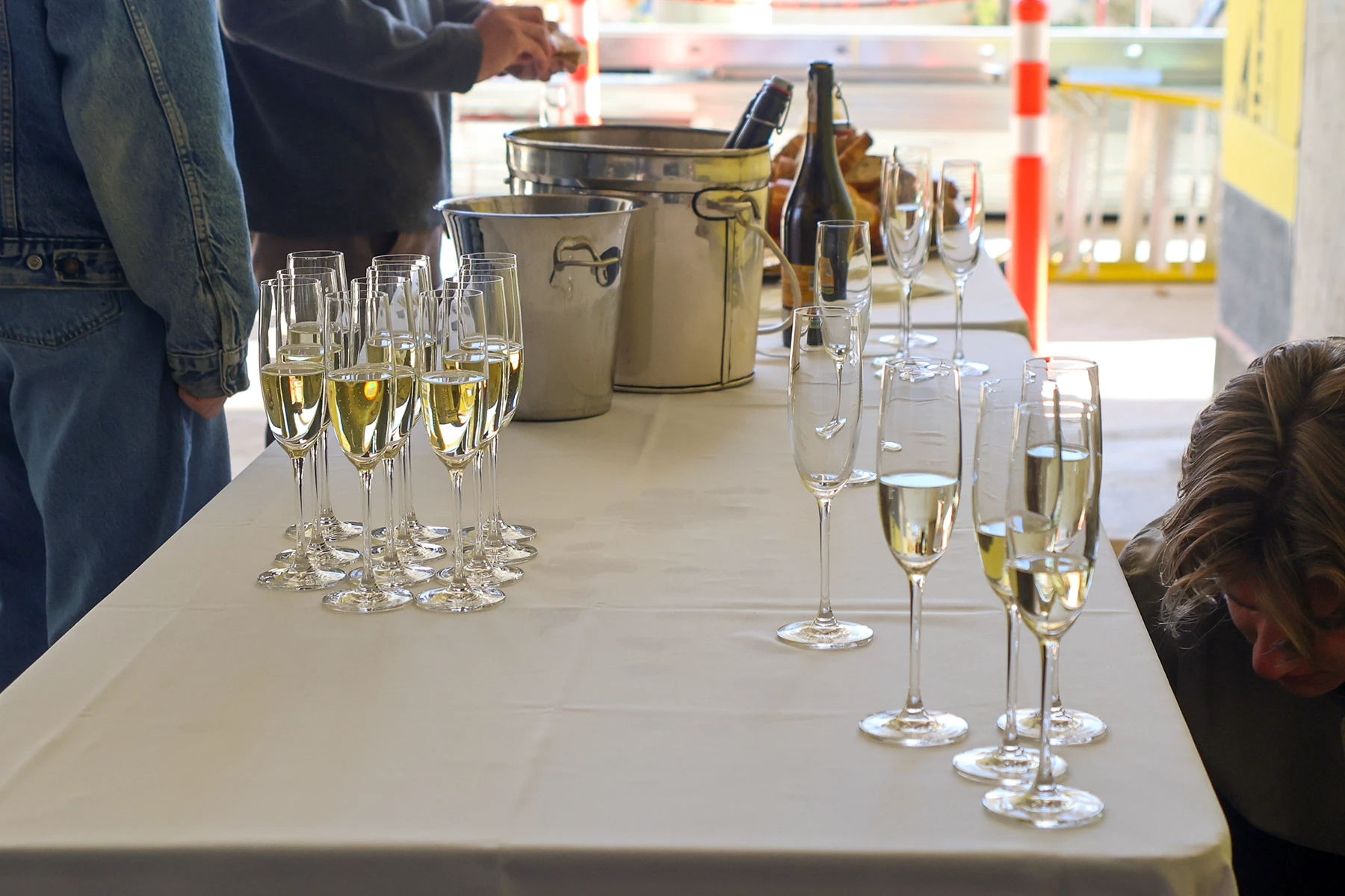 Following the speeches, attendees were invited to sign the final cross-laminated timber (CLT) panel, commemorating the completion of the building’s structure. Nick Sully of Shape Architecture then offered a toast of recognition — acknowledging the many hands and disciplines involved in bringing Menno Hall to this point, and marking the occasion as an important step toward completion.