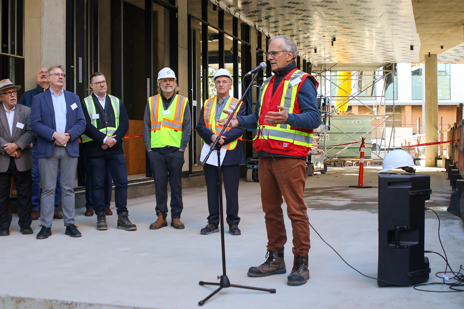 Paul Fast, a pioneer in the use of mass timber, spoke about the sustainability benefits of this form of construction and reflected on the significance of the Menno Hall project. MCCBC CEO Wayne Bremner spoke about the partnerships that have brought the project to this stage and the vision it serves.